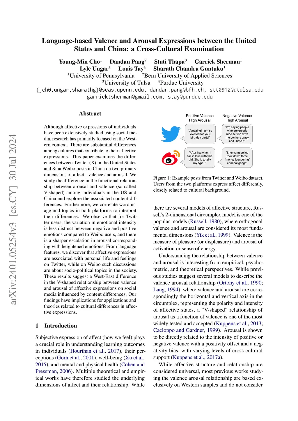 Language-based Valence and Arousal Expressions between the United States and China: a Cross-Cultural Examination