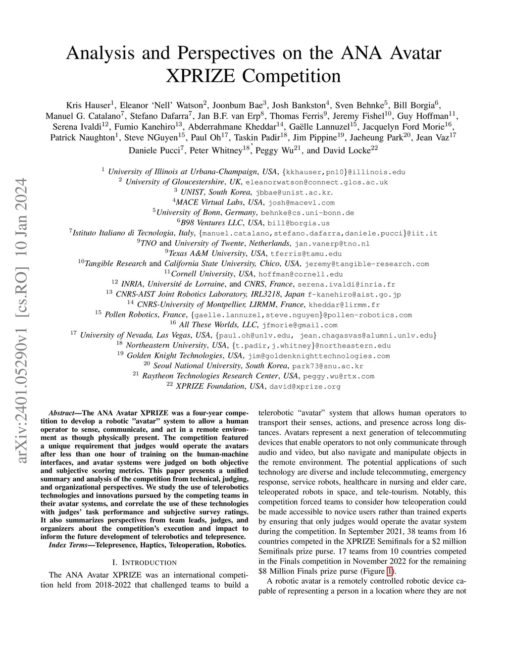 Analysis and Perspectives on the ANA Avatar XPRIZE Competition