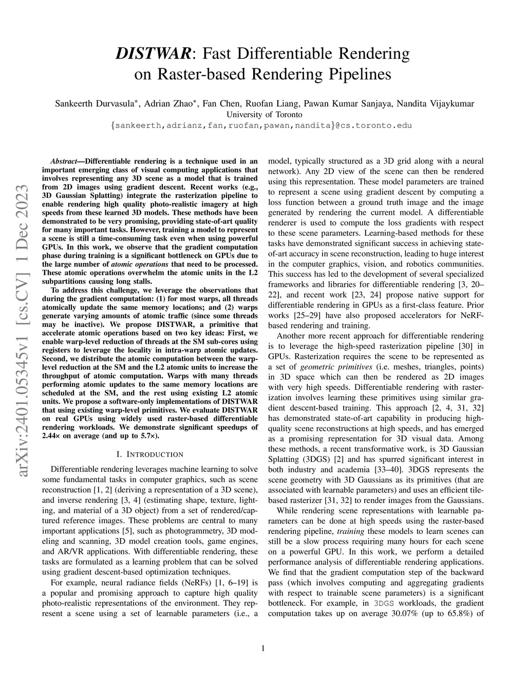DISTWAR: Fast Differentiable Rendering on Raster-based Rendering