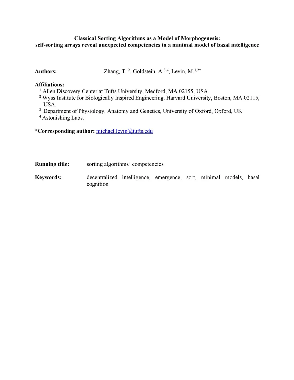 Classical Sorting Algorithms as a Model of Morphogenesis: self-sorting