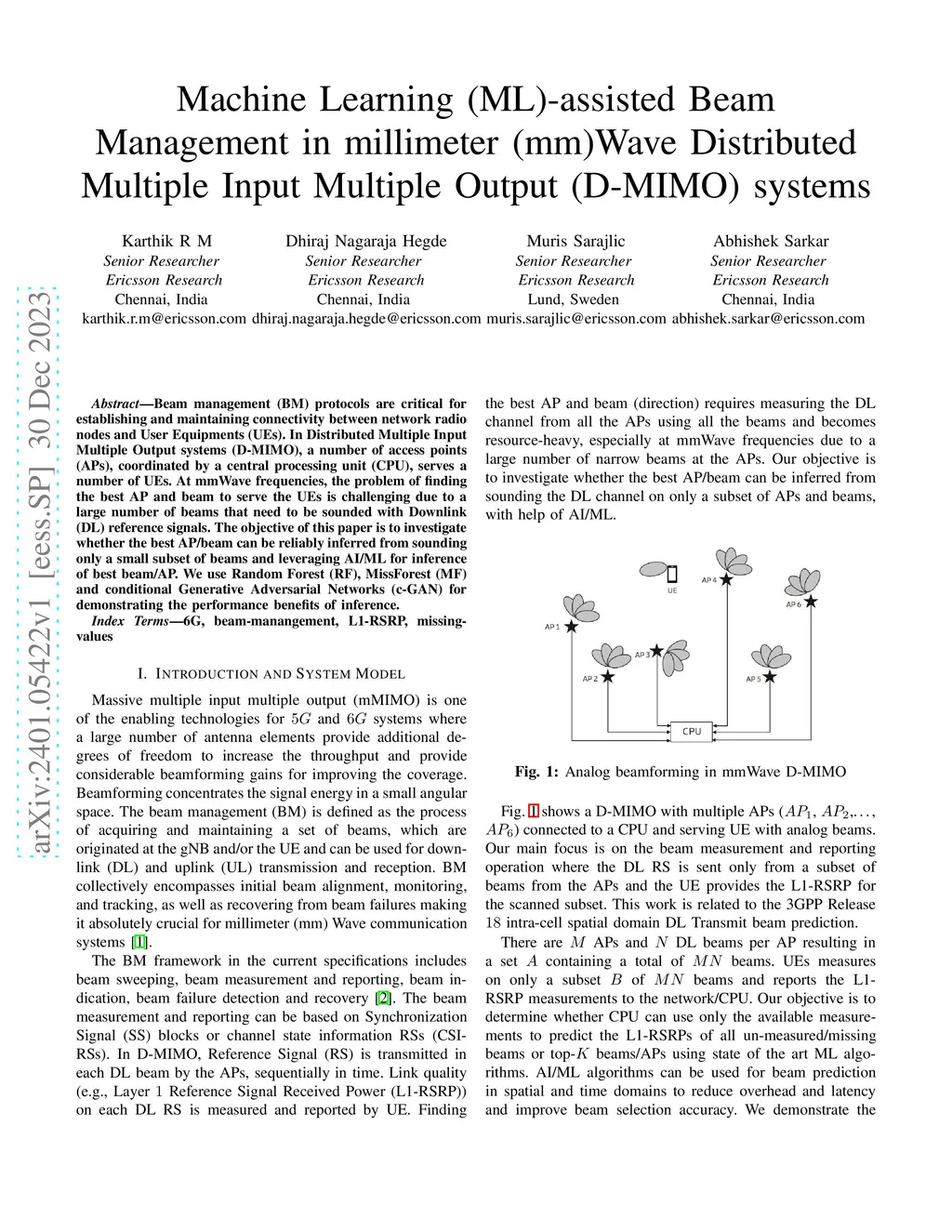 Beam management (BM) protocols are critical for establishing and maintaining connectivity between network radio nodes and User Equipments (UEs). In Distributed Multiple Input Multiple Output systems (D-MIMO), a number of access points (APs), coordinated by a central processing unit (CPU), serves a number of UEs. At mmWave frequencies, the problem of finding the best AP and beam to serve the UEs is challenging due to a large number of beams that need to be sounded with Downlink (DL) reference signals. The objective of this paper is to investigate whether the best AP/beam can be reliably inferred from sounding only a small subset of beams and leveraging AI/ML for inference of best beam/AP. We use Random Forest (RF), MissForest (MF) and conditional Generative Adversarial Networks (c-GAN) for demonstrating the performance benefits of inference.