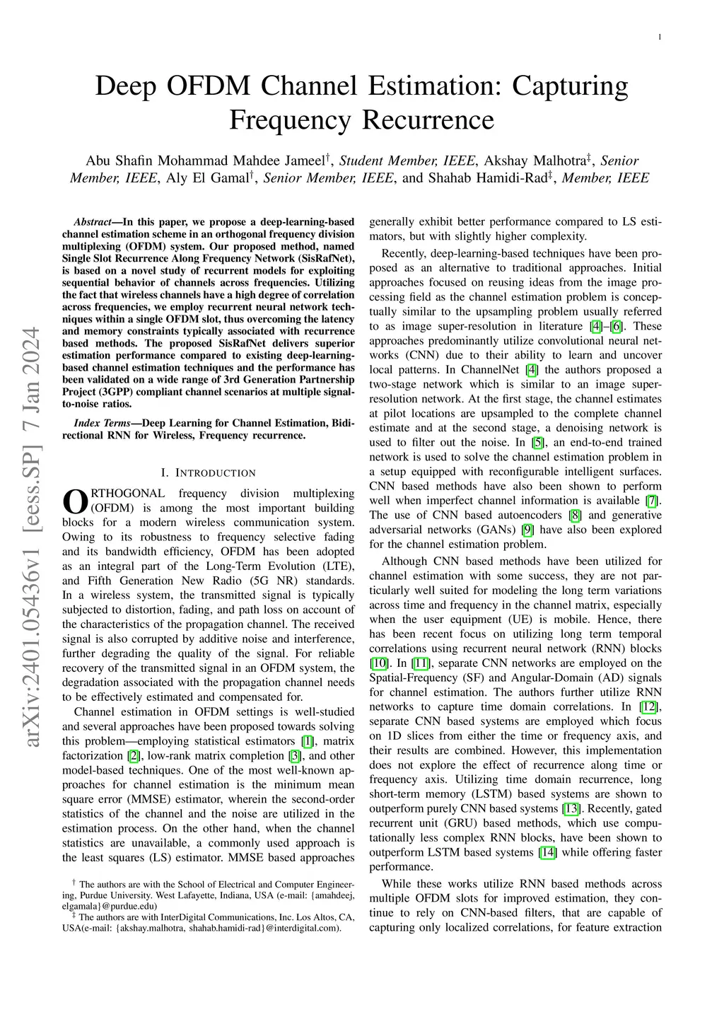 In this paper, we propose a deep-learning-based channel estimation scheme in an orthogonal frequency division multiplexing (OFDM) system. Our proposed method, named Single Slot Recurrence Along Frequency Network (SisRafNet), is based on a novel study of recurrent models for exploiting sequential behavior of channels across frequencies. Utilizing the fact that wireless channels have a high degree of correlation across frequencies, we employ recurrent neural network techniques within a single OFDM slot, thus overcoming the latency and memory constraints typically associated with recurrence based methods. The proposed SisRafNet delivers superior estimation performance compared to existing deep-learning-based channel estimation techniques and the performance has been validated on a wide range of 3rd Generation Partnership Project (3GPP) compliant channel scenarios at multiple signal-to-noise ratios.