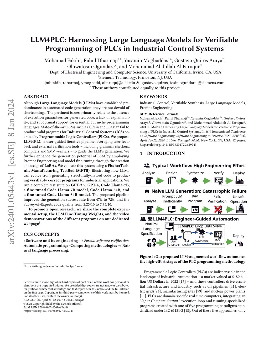 LLM4PLC: Harnessing Large Language Models for Verifiable Programming of
