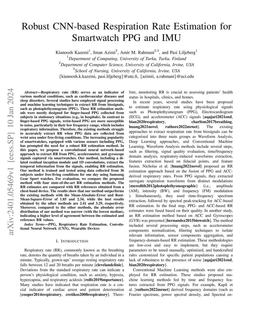 Robust CNN-based Respiration Rate Estimation for Smartwatch PPG and IMU