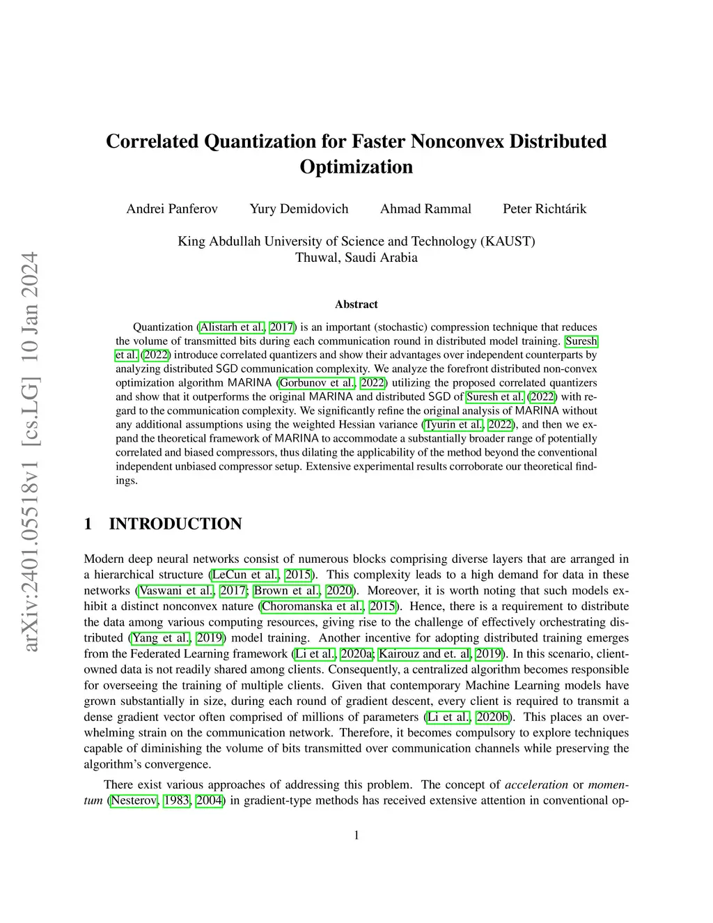 Quantization (Alistarh et al., 2017) is an important (stochastic) compression technique that reduces the volume of transmitted bits during each communication round in distributed model training. Suresh et al. (2022) introduce correlated quantizers and show their advantages over independent counterparts by analyzing distributed SGD communication complexity. We analyze the forefront distributed non-convex optimization algorithm MARINA (Gorbunov et al., 2022) utilizing the proposed correlated quantizers and show that it outperforms the original MARINA and distributed SGD of Suresh et al. (2022) with regard to the communication complexity. We significantly refine the original analysis of MARINA without any additional assumptions using the weighted Hessian variance (Tyurin et al., 2022), and then we expand the theoretical framework of MARINA to accommodate a substantially broader range of potentially correlated and biased compressors, thus dilating the applicability of the method beyond the conventional independent unbiased compressor setup. Extensive experimental results corroborate our theoretical findings.