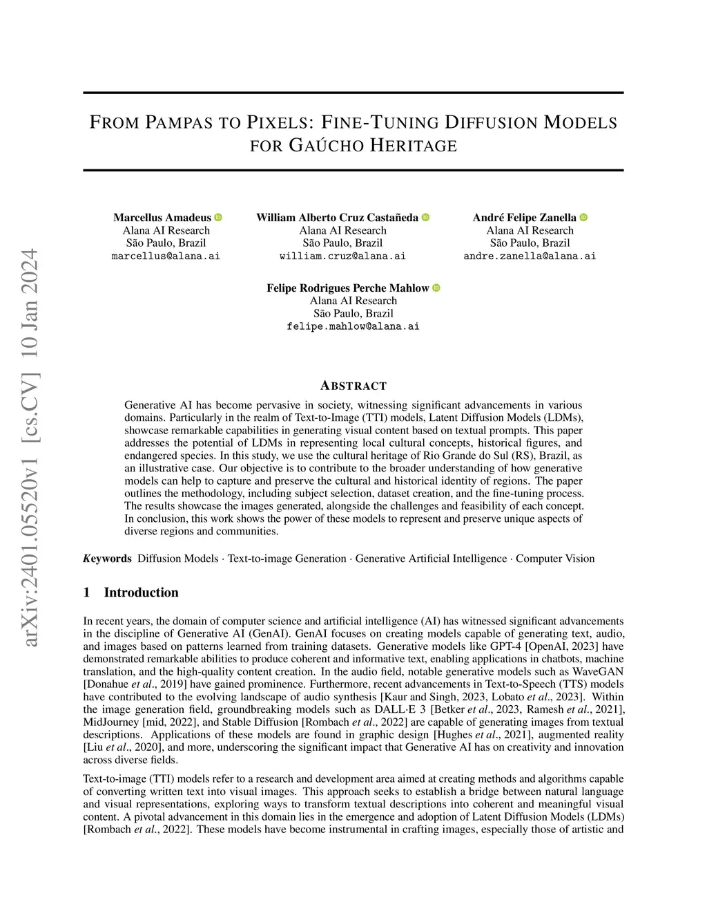 Generative AI has become pervasive in society, witnessing significant advancements in various domains. Particularly in the realm of Text-to-Image (TTI) models, Latent Diffusion Models (LDMs), showcase remarkable capabilities in generating visual content based on textual prompts. This paper addresses the potential of LDMs in representing local cultural concepts, historical figures, and endangered species. In this study, we use the cultural heritage of Rio Grande do Sul (RS), Brazil, as an illustrative case. Our objective is to contribute to the broader understanding of how generative models can help to capture and preserve the cultural and historical identity of regions. The paper outlines the methodology, including subject selection, dataset creation, and the fine-tuning process. The results showcase the images generated, alongside the challenges and feasibility of each concept. In conclusion, this work shows the power of these models to represent and preserve unique aspects of diverse regions and communities.
