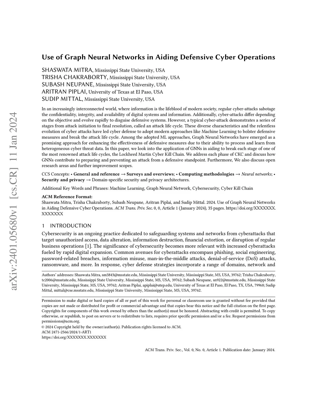 Use of Graph Neural Networks in Aiding Defensive Cyber Operations