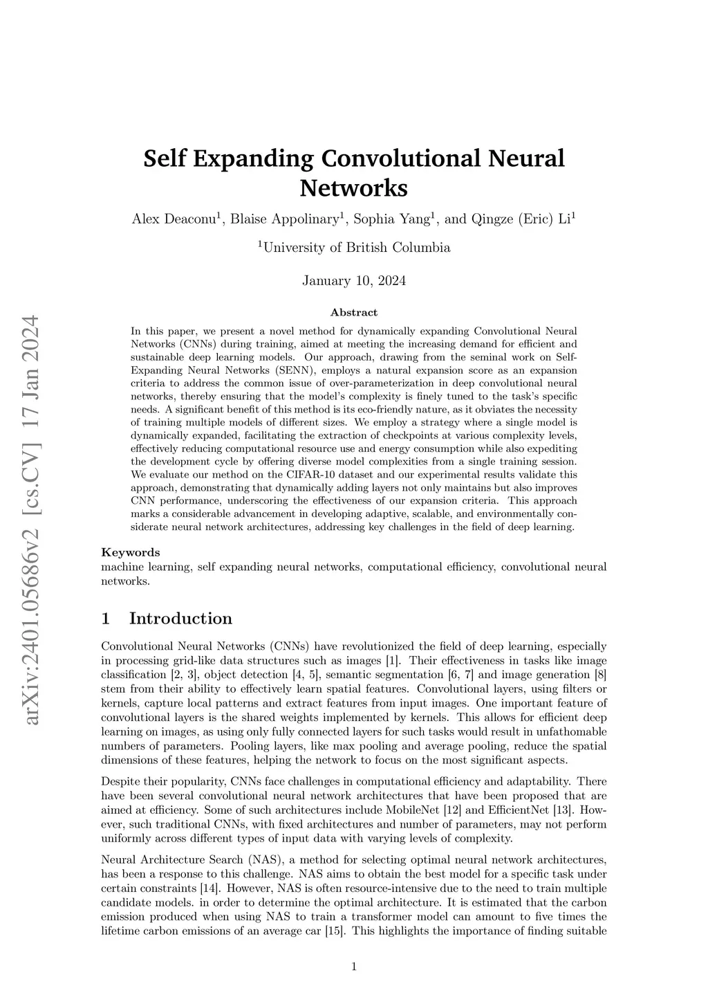 In this paper, we present a novel method for dynamically expanding Convolutional Neural Networks (CNNs) during training, aimed at meeting the increasing demand for efficient and sustainable deep learning models. Our approach, drawing from the seminal work on Self-Expanding Neural Networks (SENN), employs a natural expansion score as an expansion criteria to address the common issue of over-parameterization in deep convolutional neural networks, thereby ensuring that the model's complexity is finely tuned to the task's specific needs. A significant benefit of this method is its eco-friendly nature, as it obviates the necessity of training multiple models of different sizes. We employ a strategy where a single model is dynamically expanded, facilitating the extraction of checkpoints at various complexity levels, effectively reducing computational resource use and energy consumption while also expediting the development cycle by offering diverse model complexities from a single training session. We evaluate our method on the CIFAR-10 dataset and our experimental results validate this approach, demonstrating that dynamically adding layers not only maintains but also improves CNN performance, underscoring the effectiveness of our expansion criteria. This approach marks a considerable advancement in developing adaptive, scalable, and environmentally considerate neural network architectures, addressing key challenges in the field of deep learning.