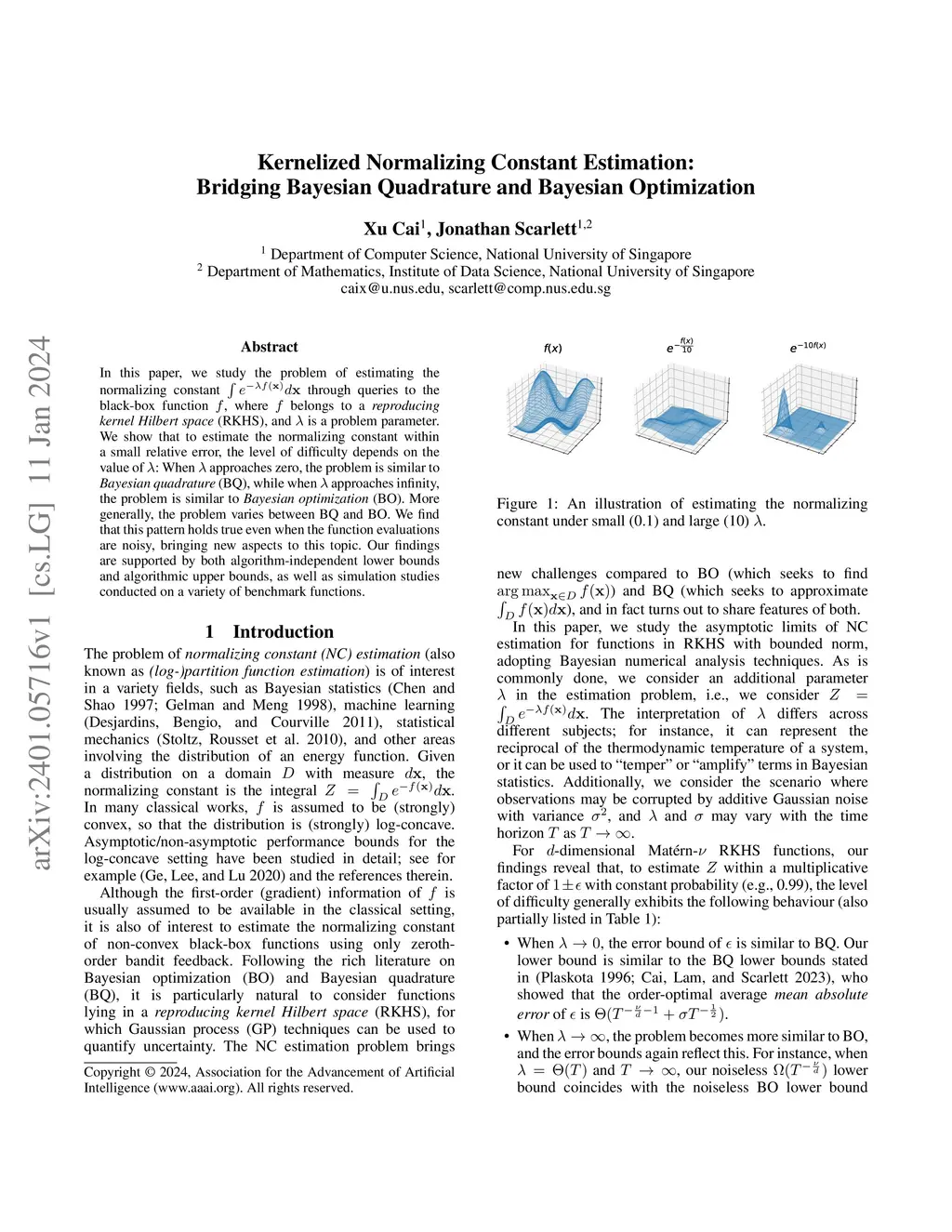 In this paper, we study the problem of estimating the normalizing constant through queries to the black-box function , where belongs to a reproducing kernel Hilbert space (RKHS), and is a problem parameter. We show that to estimate the normalizing constant within a small relative error, the level of difficulty depends on the value of : When approaches zero, the problem is similar to Bayesian quadrature (BQ), while when approaches infinity, the problem is similar to Bayesian optimization (BO). More generally, the problem varies between BQ and BO. We find that this pattern holds true even when the function evaluations are noisy, bringing new aspects to this topic. Our findings are supported by both algorithm-independent lower bounds and algorithmic upper bounds, as well as simulation studies conducted on a variety of benchmark functions.