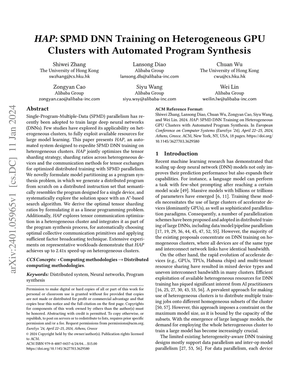 HAP: SPMD DNN Training on Heterogeneous GPU Clusters with Automated