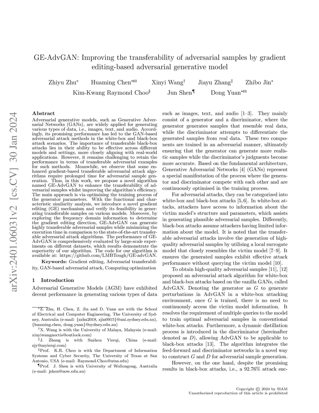 GE-AdvGAN: Improving the transferability of adversarial samples by gradient editing-based adversarial generative model