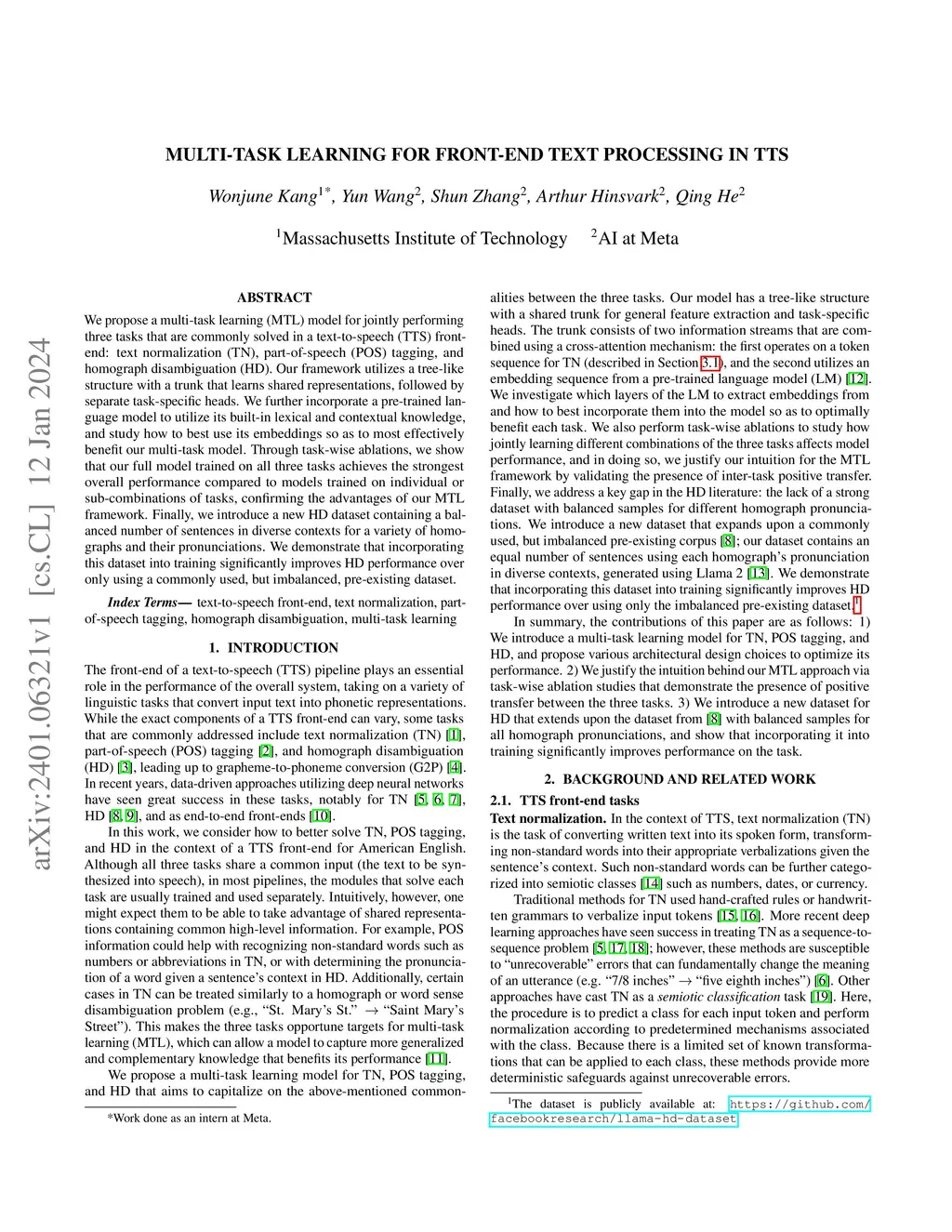 Multi-Task Learning for Front-End Text Processing in TTS