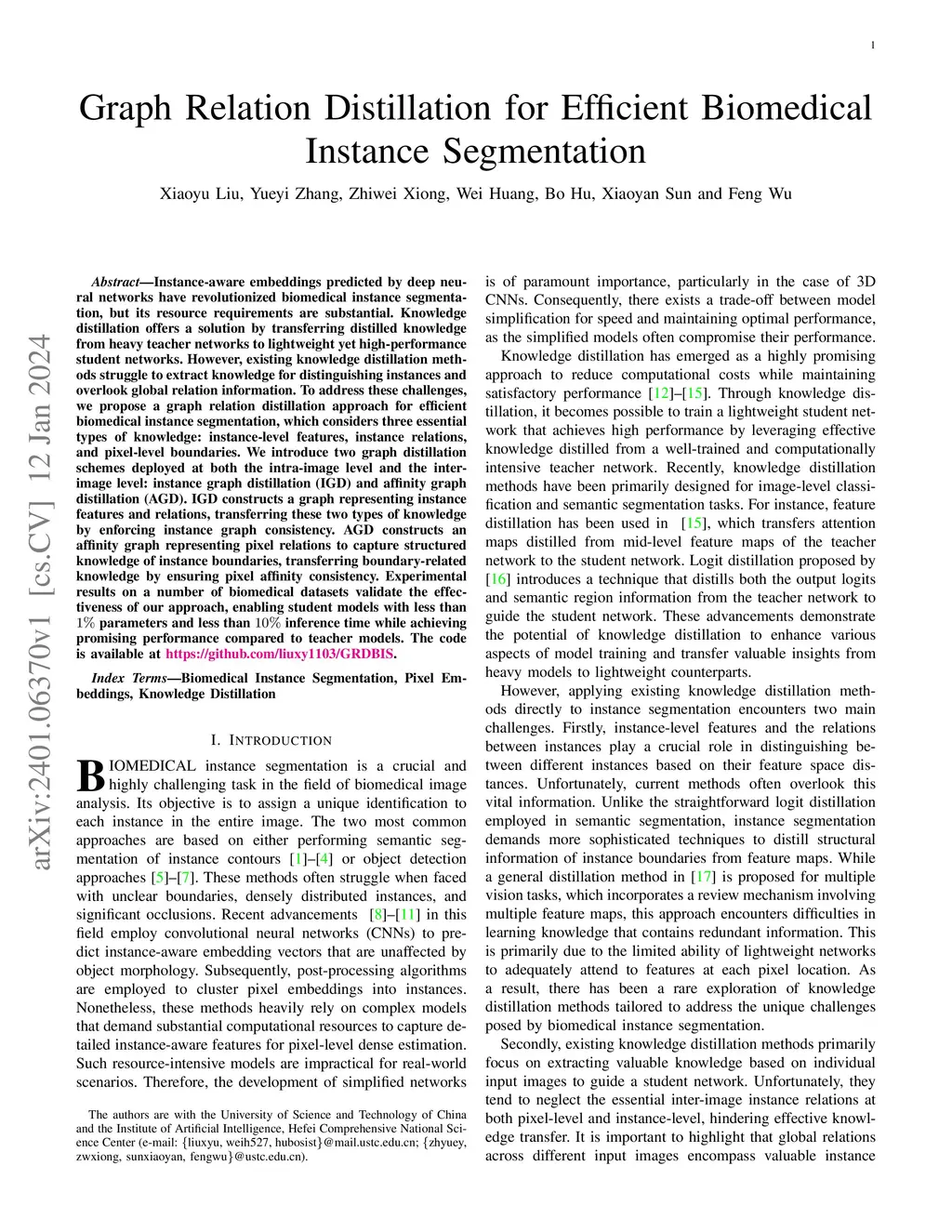 Graph Relation Distillation for Efficient Biomedical Instance