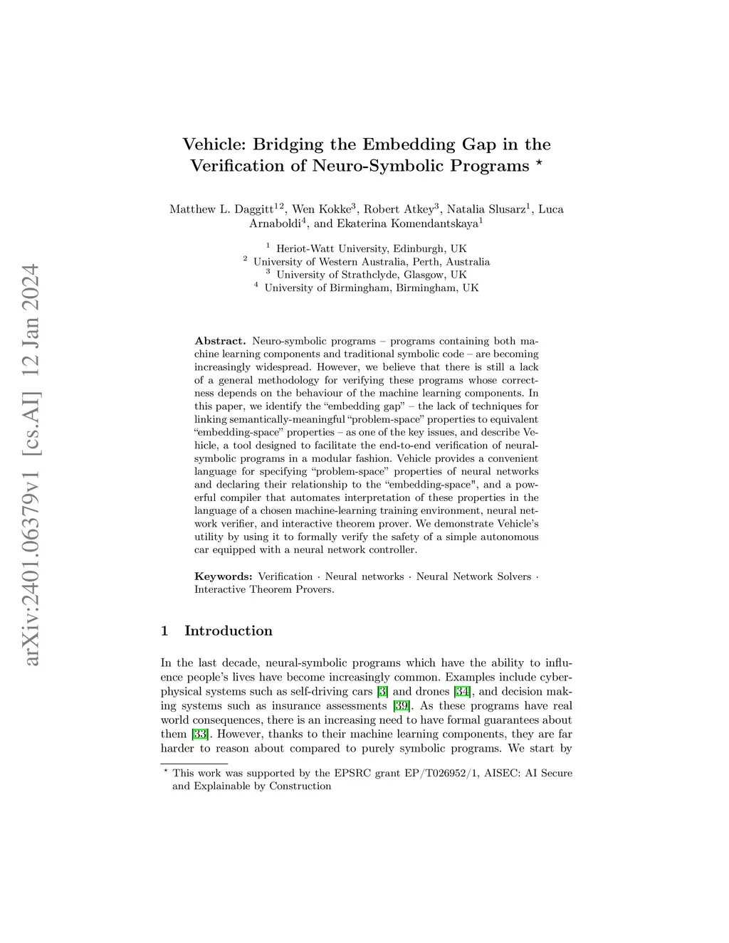 Vehicle: Bridging the Embedding Gap in the Verification of Neuro-Symbolic Programs