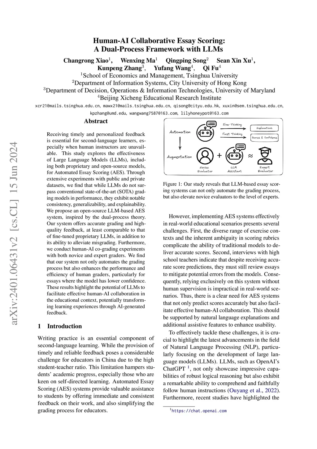 Human-AI Collaborative Essay Scoring: A Dual-Process Framework with LLMs
