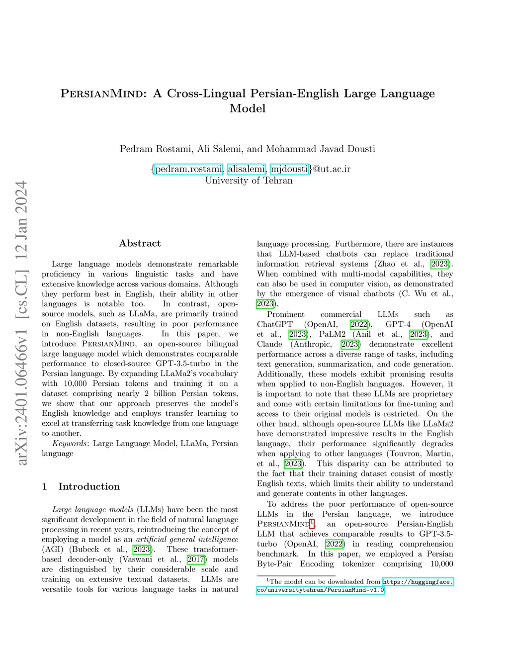 PersianMind: A Cross-Lingual Persian-English Large Language Model
