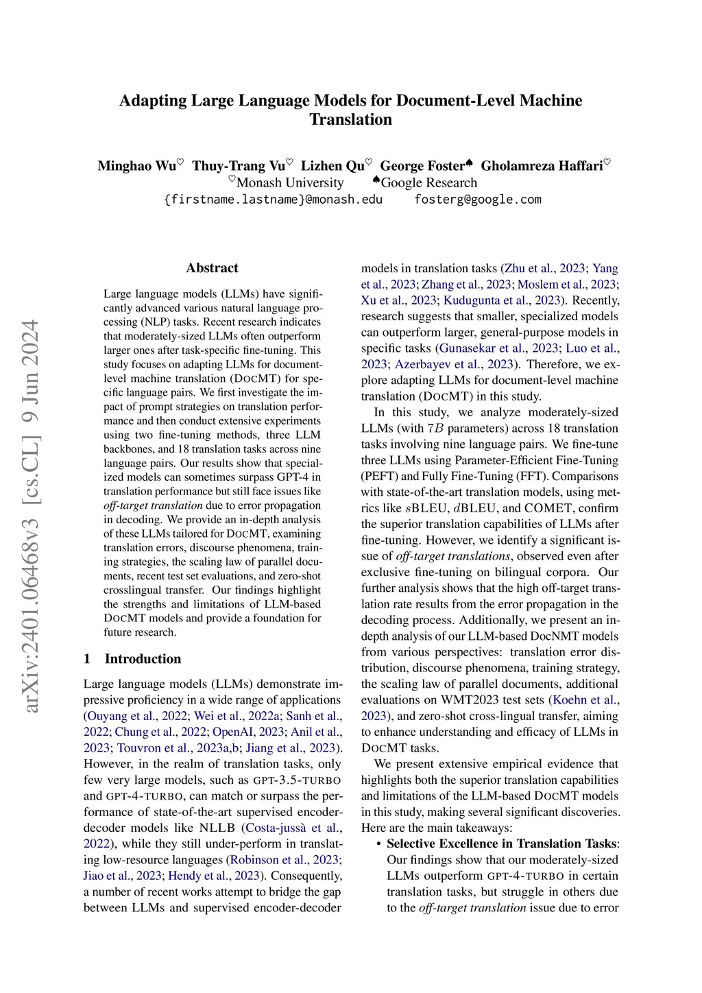 Adapting Large Language Models for Document-Level Machine Translation