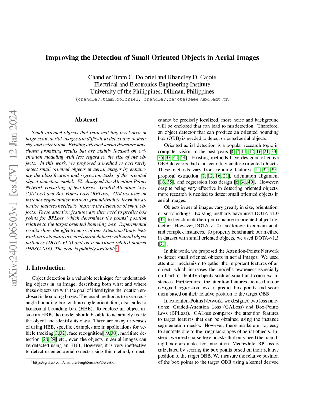 Improving the Detection of Small Oriented Objects in Aerial Images