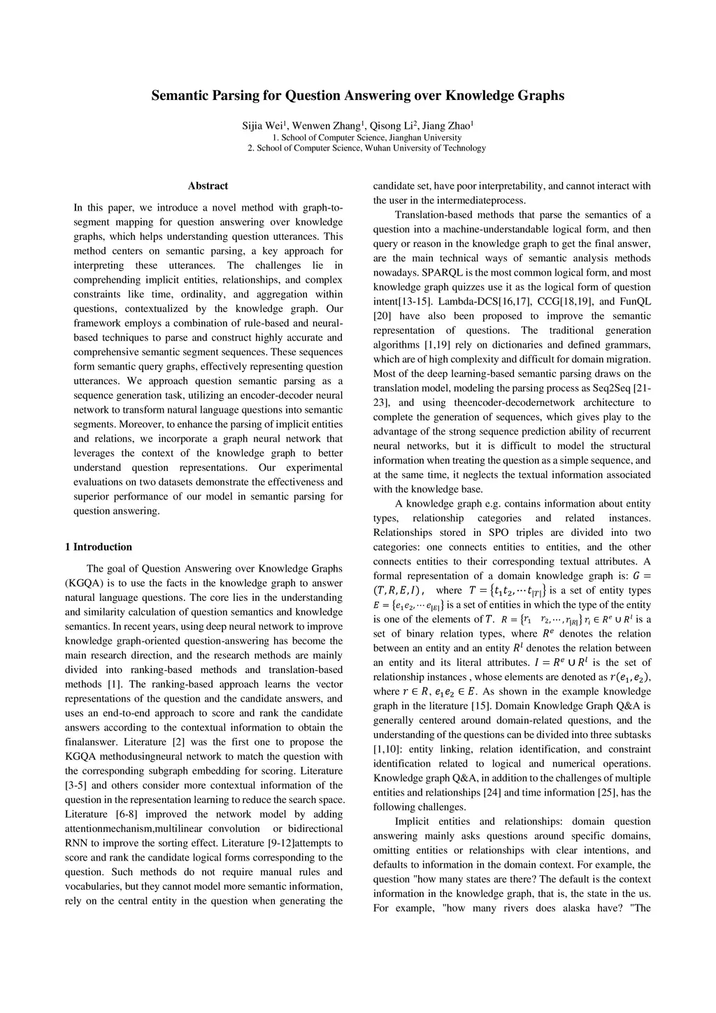 In this paper, we propose a novel method for question answering over knowledge graphs based on graph-to-segment mapping, designed to improve the understanding of natural language questions. Our approach is grounded in semantic parsing, a key technique for interpreting question utterances. The main challenges arise from handling implicit entities and relations, as well as complex constraints such as temporal conditions, ordinality, and aggregation within the context of a knowledge graph. To address these issues, our framework integrates both rule-based and neural methods to parse and construct accurate, comprehensive semantic segment sequences. These sequences are then assembled into semantic query graphs, providing precise representations of question utterances. We formulate question semantic parsing as a sequence generation task, employing an encoder-decoder neural network to map natural language questions into semantic segments. Furthermore, to enhance the identification of implicit entities and relations, we incorporate a graph neural network that leverages knowledge graph context to enrich question representations. Experimental evaluations on two benchmark datasets demonstrate the effectiveness and superior performance of our model in semantic parsing for knowledge graph question answering.
