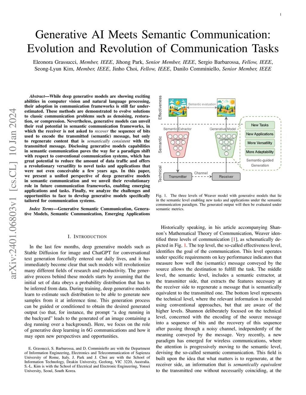 While deep generative models are showing exciting abilities in computer vision and natural language processing, their adoption in communication frameworks is still far underestimated. These methods are demonstrated to evolve solutions to classic communication problems such as denoising, restoration, or compression. Nevertheless, generative models can unveil their real potential in semantic communication frameworks, in which the receiver is not asked to recover the sequence of bits used to encode the transmitted (semantic) message, but only to regenerate content that is semantically consistent with the transmitted message. Disclosing generative models capabilities in semantic communication paves the way for a paradigm shift with respect to conventional communication systems, which has great potential to reduce the amount of data traffic and offers a revolutionary versatility to novel tasks and applications that were not even conceivable a few years ago. In this paper, we present a unified perspective of deep generative models in semantic communication and we unveil their revolutionary role in future communication frameworks, enabling emerging applications and tasks. Finally, we analyze the challenges and opportunities to face to develop generative models specifically tailored for communication systems.