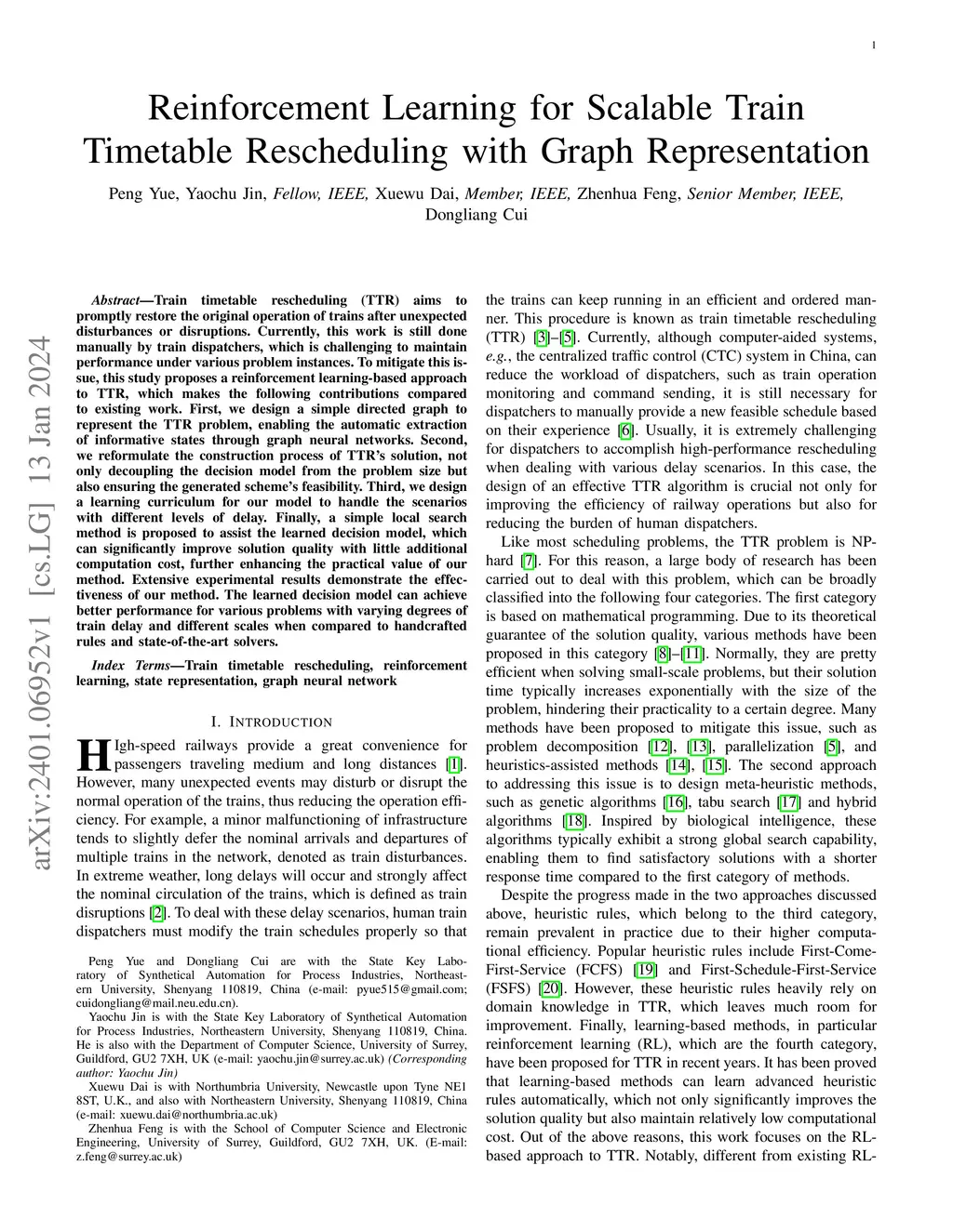 Reinforcement Learning for Scalable Train Timetable Rescheduling with