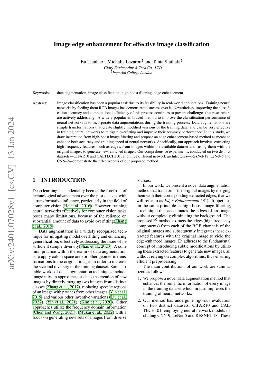 Image classification has been a popular task due to its feasibility in real-world applications. Training neural networks by feeding them RGB images has demonstrated success over it. Nevertheless, improving the classification accuracy and computational efficiency of this process continues to present challenges that researchers are actively addressing. A widely popular embraced method to improve the classification performance of neural networks is to incorporate data augmentations during the training process. Data augmentations are simple transformations that create slightly modified versions of the training data and can be very effective in training neural networks to mitigate overfitting and improve their accuracy performance. In this study, we draw inspiration from high-boost image filtering and propose an edge enhancement-based method as means to enhance both accuracy and training speed of neural networks. Specifically, our approach involves extracting high frequency features, such as edges, from images within the available dataset and fusing them with the original images, to generate new, enriched images. Our comprehensive experiments, conducted on two distinct datasets CIFAR10 and CALTECH101, and three different network architectures ResNet-18, LeNet-5 and CNN-9 demonstrates the effectiveness of our proposed method.