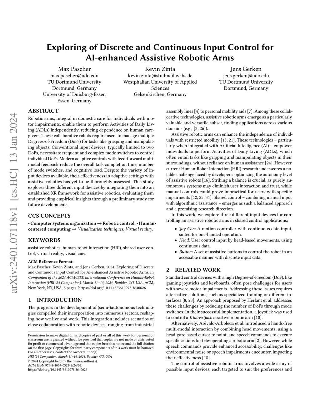 Assistive Robotic Arms