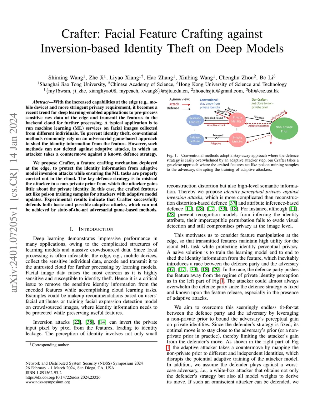 Crafter: Facial Feature Crafting against Inversion-based Identity Theft