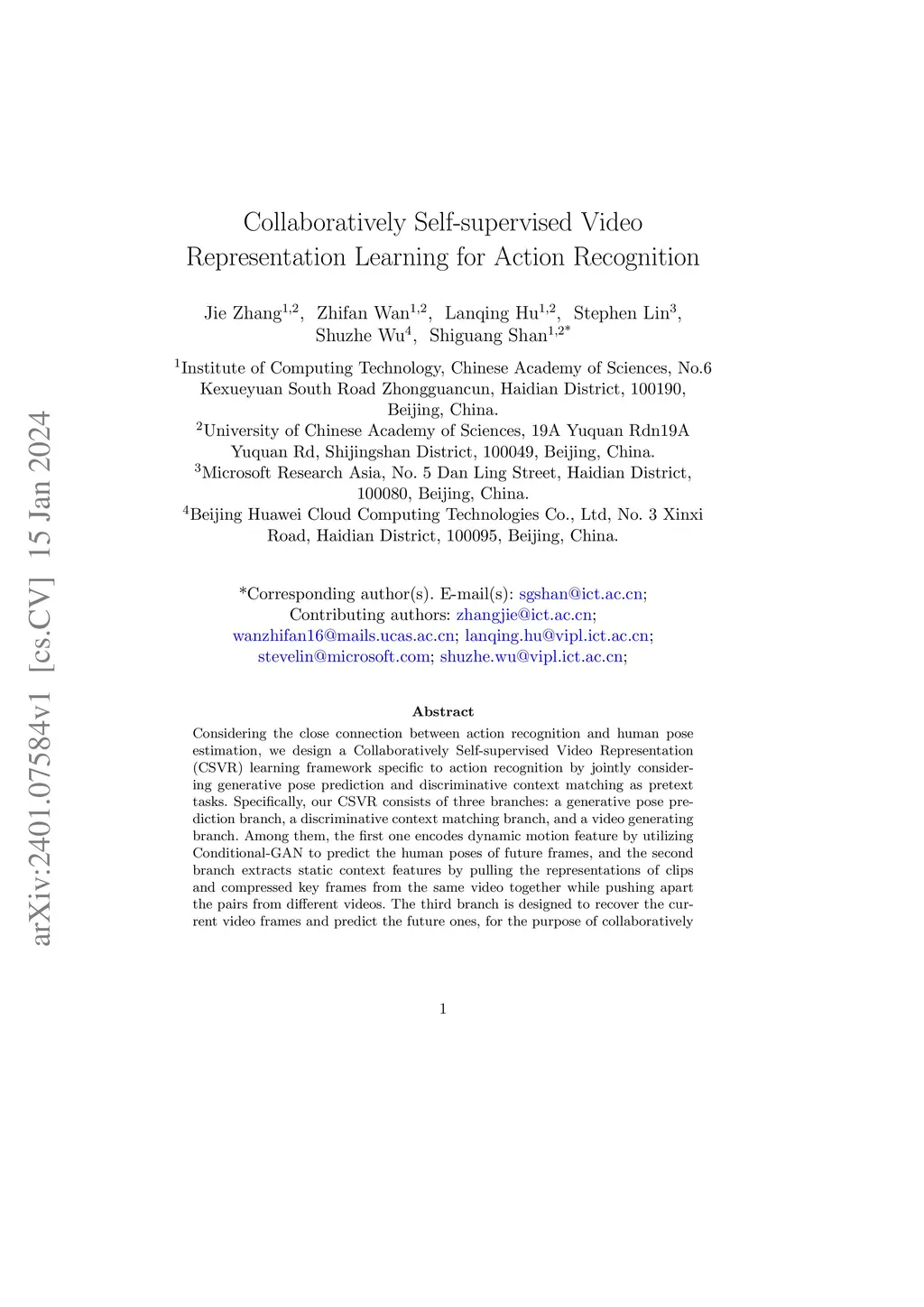 Collaboratively Self-supervised Video Representation Learning for Action Recognition
