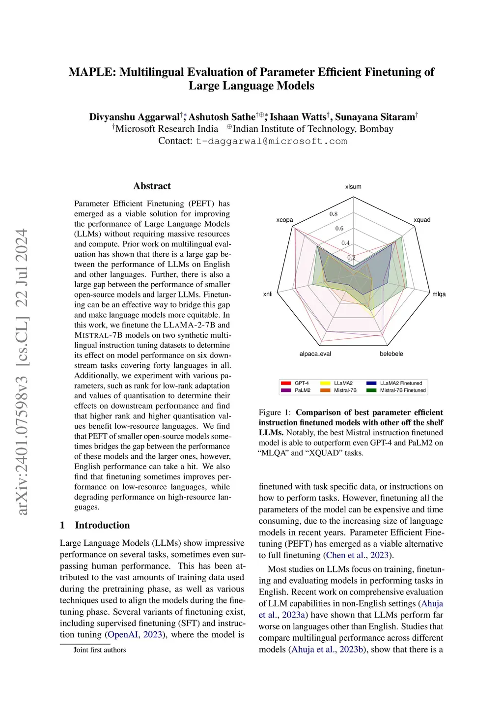 MAPLE: Multilingual Evaluation of Parameter Efficient Finetuning of