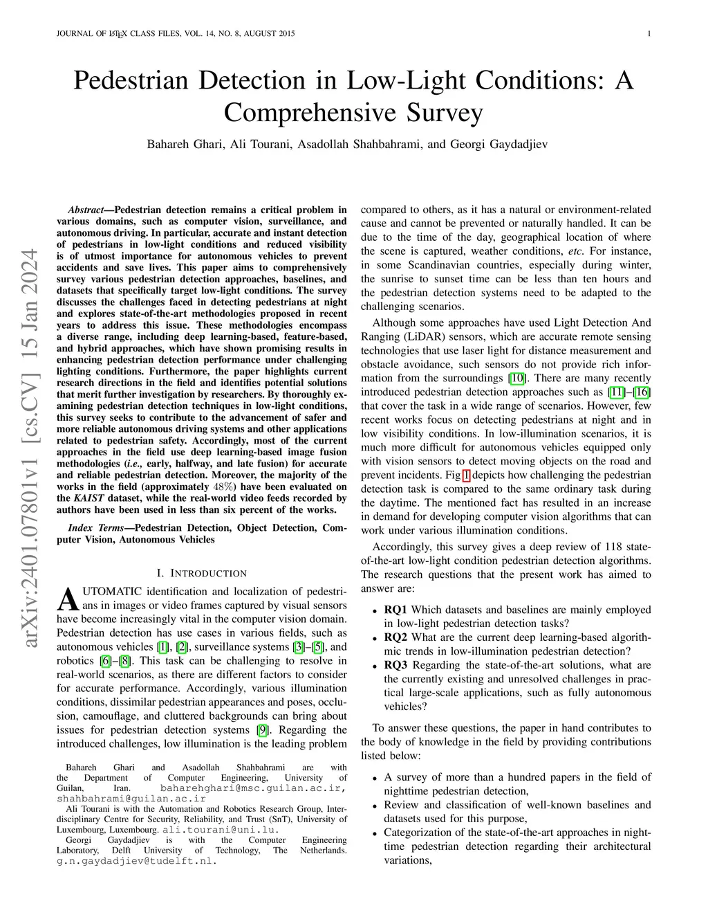 Pedestrian Detection in Low-Light Conditions: A Comprehensive Survey