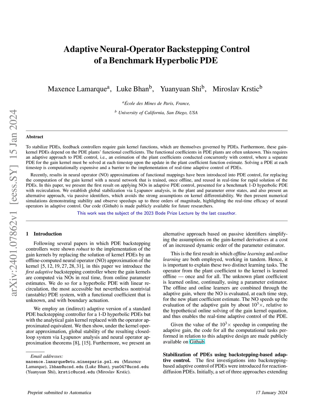 Adaptive Neural-Operator Backstepping Control of a Benchmark Hyperbolic