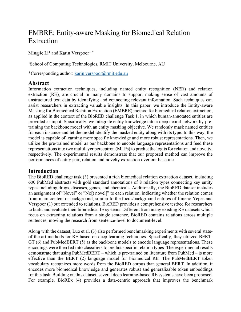 EMBRE: Entity-aware Masking for Biomedical Relation Extraction