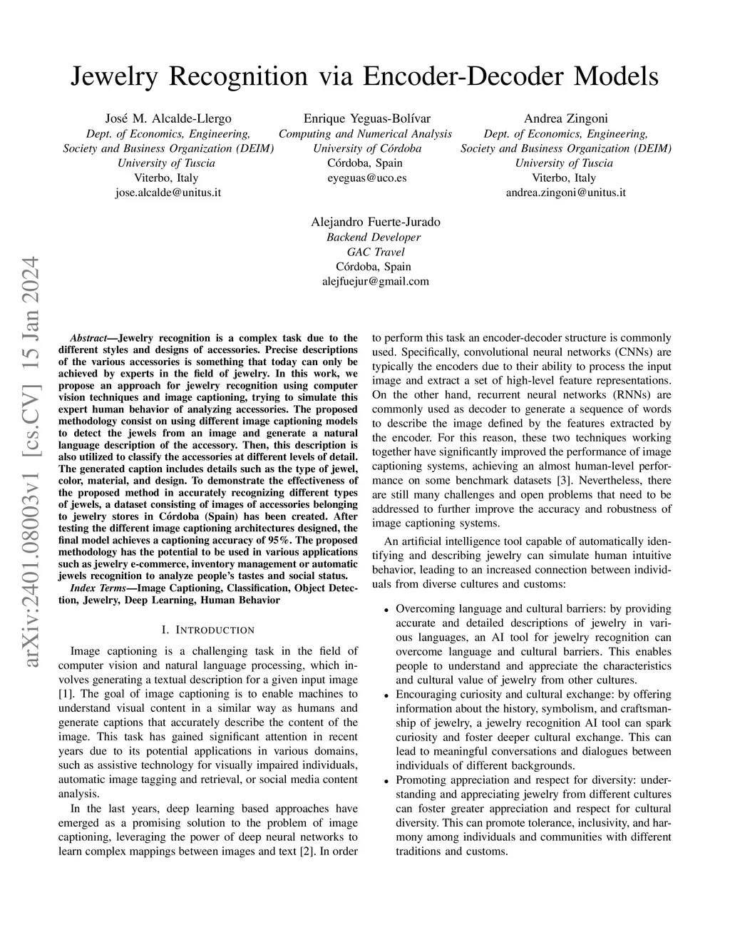 Jewelry Recognition via Encoder-Decoder Models