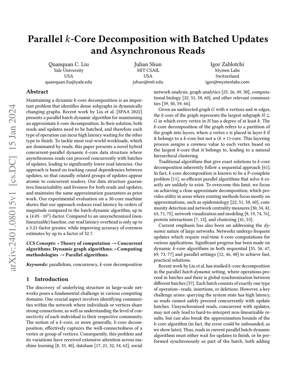 Maintaining a dynamic -core decomposition is an important problem that identifies dense subgraphs in dynamically changing graphs. Recent work by Liu et al. [SPAA 2022] presents a parallel batch-dynamic algorithm for maintaining an approximate -core decomposition. In their solution, both reads and updates need to be batched, and therefore each type of operation can incur high latency waiting for the other type to finish. To tackle most real-world workloads, which are dominated by reads, this paper presents a novel hybrid concurrent-parallel dynamic -core data structure where asynchronous reads can proceed concurrently with batches of updates, leading to significantly lower read latencies. Our approach is based on tracking causal dependencies between updates, so that causally related groups of updates appear atomic to concurrent readers. Our data structure guarantees linearizability and liveness for both reads and updates, and maintains the same approximation guarantees as prior work. Our experimental evaluation on a 30-core machine shows that our approach reduces read latency by orders of magnitude compared to the batch-dynamic algorithm, up to a -factor. Compared to an unsynchronized (non-linearizable) baseline, our read latency overhead is only up to a -factor greater, while improving accuracy of coreness estimates by up to a factor of .