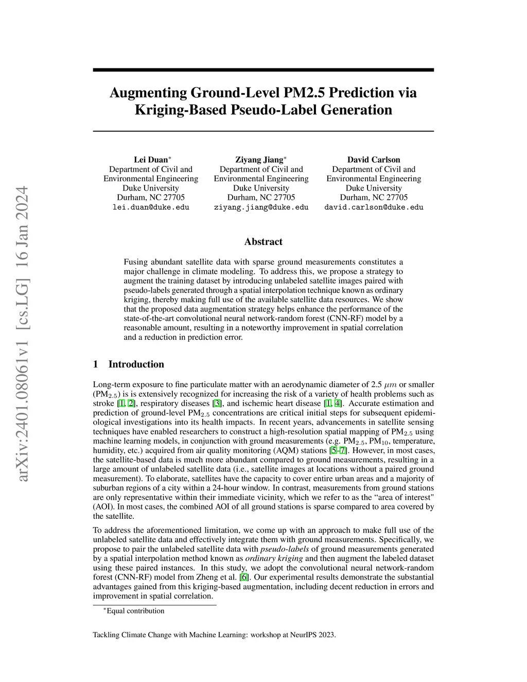 Fusing abundant satellite data with sparse ground measurements constitutes a major challenge in climate modeling. To address this, we propose a strategy to augment the training dataset by introducing unlabeled satellite images paired with pseudo-labels generated through a spatial interpolation technique known as ordinary kriging, thereby making full use of the available satellite data resources. We show that the proposed data augmentation strategy helps enhance the performance of the state-of-the-art convolutional neural network-random forest (CNN-RF) model by a reasonable amount, resulting in a noteworthy improvement in spatial correlation and a reduction in prediction error.