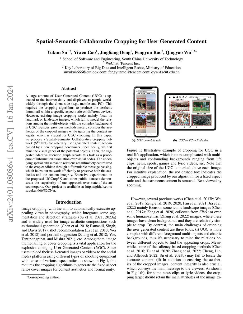 Spatial-Semantic Collaborative Cropping for User Generated Content