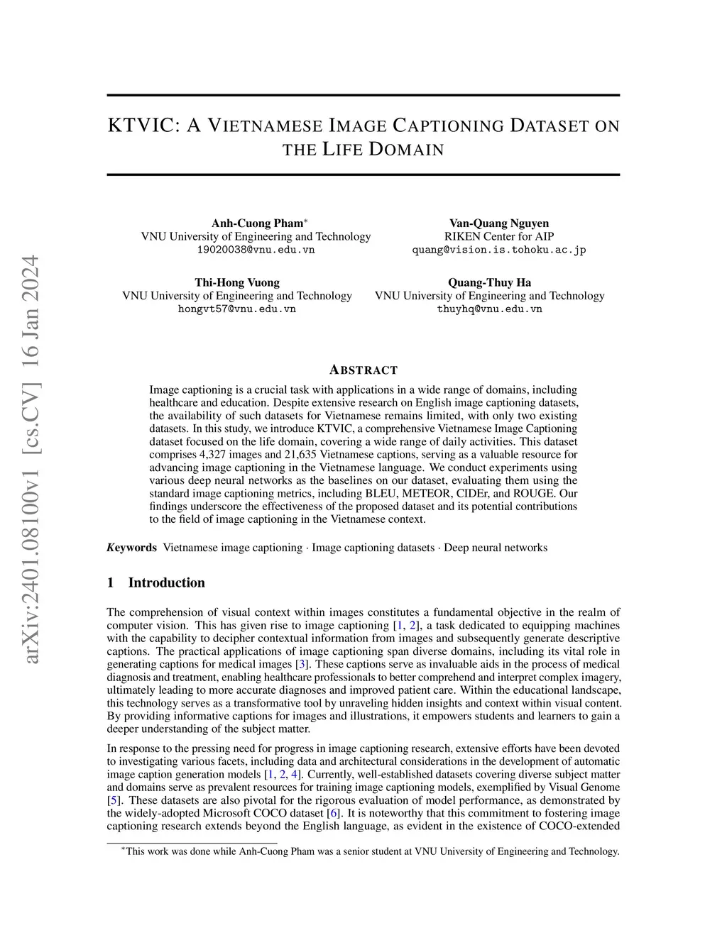 KTVIC: A Vietnamese Image Captioning Dataset on the Life Domain