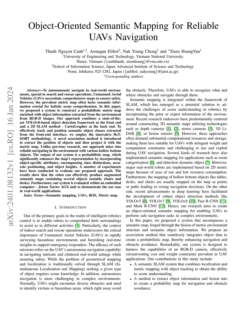 Object-Oriented Semantic Mapping for Reliable UAVs Navigation