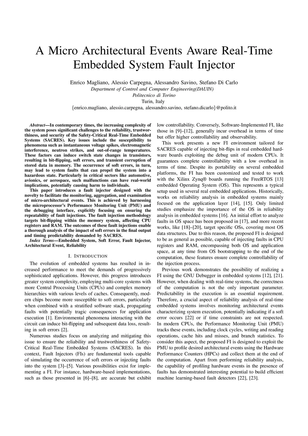 A Micro Architectural Events Aware Real-Time Embedded System Fault