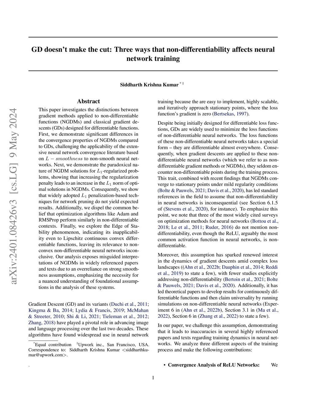 This paper investigates the distinctions between gradient methods applied to non-differentiable functions (NGDMs) and classical gradient descents (GDs) designed for differentiable functions. First, we demonstrate significant differences in the convergence properties of NGDMs compared to GDs, challenging the applicability of the extensive neural network convergence literature based on to non-smooth neural networks. Next, we demonstrate the paradoxical nature of NGDM solutions for -regularized problems, showing that increasing the regularization penalty leads to an increase in the norm of optimal solutions in NGDMs. Consequently, we show that widely adopted penalization-based techniques for network pruning do not yield expected results. Additionally, we dispel the common belief that optimization algorithms like Adam and RMSProp perform similarly in non-differentiable contexts. Finally, we explore the Edge of Stability phenomenon, indicating its inapplicability even to Lipschitz continuous convex differentiable functions, leaving its relevance to non-convex non-differentiable neural networks inconclusive. Our analysis exposes misguided interpretations of NGDMs in widely referenced papers and texts due to an overreliance on strong smoothness assumptions, emphasizing the necessity for a nuanced understanding of foundational assumptions in the analysis of these systems.