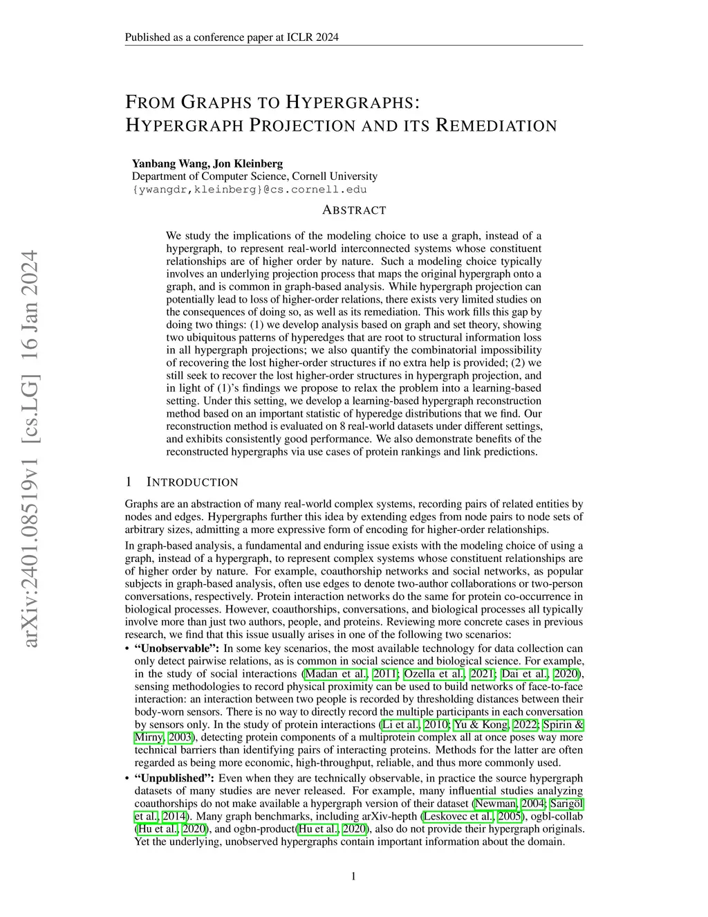 We study the implications of the modeling choice to use a graph, instead of a hypergraph, to represent real-world interconnected systems whose constituent relationships are of higher order by nature. Such a modeling choice typically involves an underlying projection process that maps the original hypergraph onto a graph, and is common in graph-based analysis. While hypergraph projection can potentially lead to loss of higher-order relations, there exists very limited studies on the consequences of doing so, as well as its remediation. This work fills this gap by doing two things: (1) we develop analysis based on graph and set theory, showing two ubiquitous patterns of hyperedges that are root to structural information loss in all hypergraph projections; we also quantify the combinatorial impossibility of recovering the lost higher-order structures if no extra help is provided; (2) we still seek to recover the lost higher-order structures in hypergraph projection, and in light of (1)'s findings we propose to relax the problem into a learning-based setting. Under this setting, we develop a learning-based hypergraph reconstruction method based on an important statistic of hyperedge distributions that we find. Our reconstruction method is evaluated on 8 real-world datasets under different settings, and exhibits consistently good performance. We also demonstrate benefits of the reconstructed hypergraphs via use cases of protein rankings and link predictions.