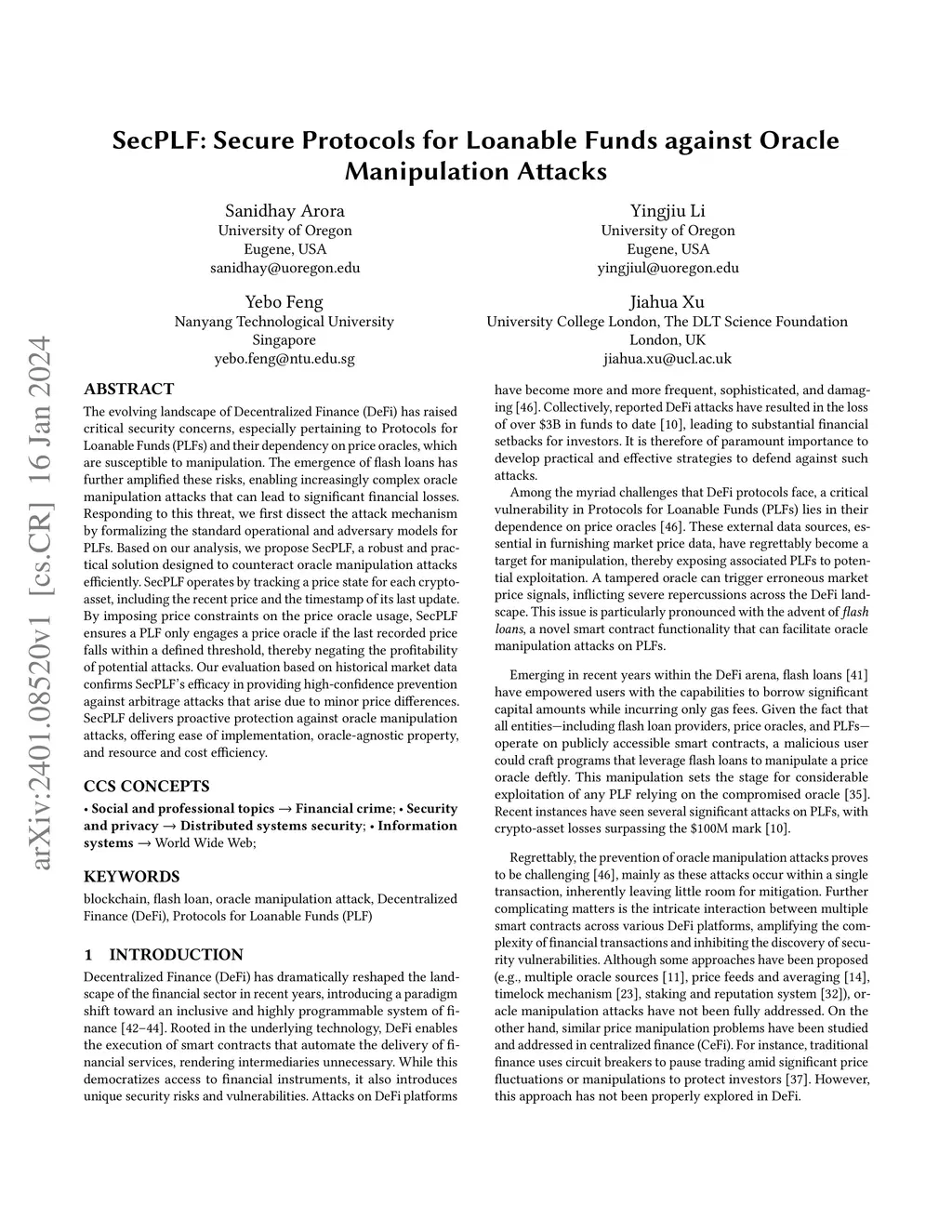 SecPLF: Secure Protocols for Loanable Funds against Oracle Manipulation