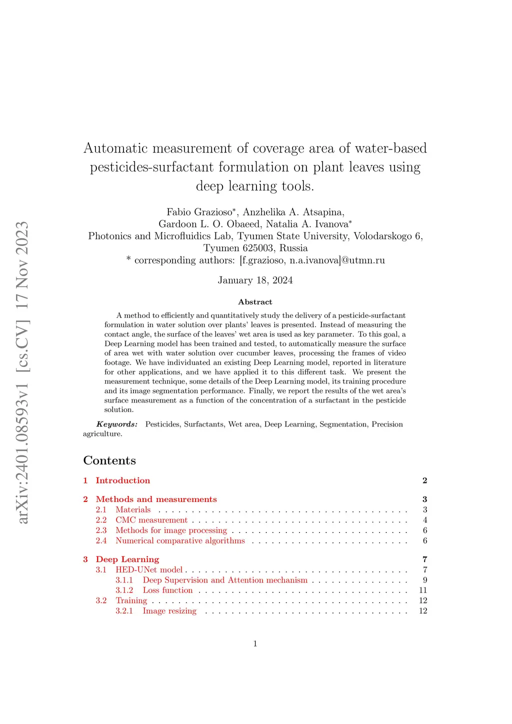 pesticides-surfactant formulation on plant leaves using deep learning tools