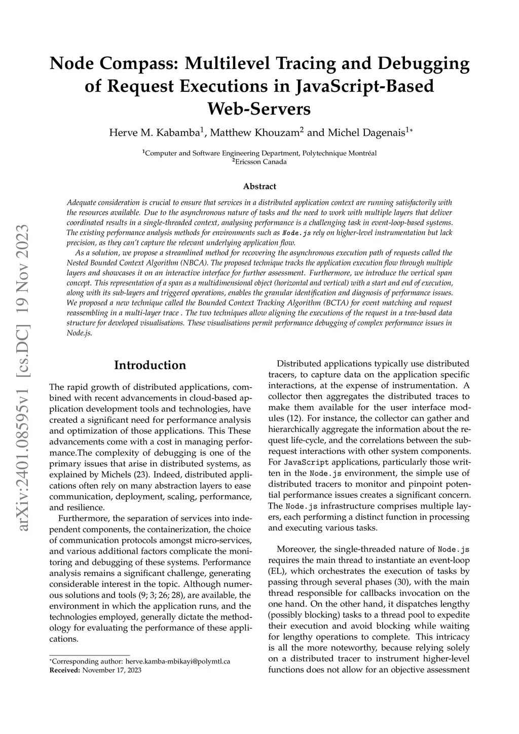 Adequate consideration is crucial to ensure that services in a distributed application context are running satisfactorily with the resources available. Due to the asynchronous nature of tasks and the need to work with multiple layers that deliver coordinated results in a single-threaded context, analysing performance is a challenging task in event-loop-based systems. The existing performance analysis methods for environments such as Node.js rely on higher-level instrumentation but lack precision, as they cannot capture the relevant underlying application flow. As a solution, we propose a streamlined method for recovering the asynchronous execution path of requests called the Nested Bounded Context Algorithm. The proposed technique tracks the application execution flow through multiple layers and showcases it on an interactive interface for further assessment. Furthermore, we introduce the vertical span concept. This representation of a span as a multidimensional object (horizontal and vertical) with a start and end of execution, along with its sub-layers and triggered operations, enables the granular identification and diagnosis of performance issues. We proposed a new technique called the Bounded Context Tracking Algorithm for event matching and request reassembling in a multi-layer trace . The two techniques allow aligning the executions of the request in a tree-based data structure for developed visualisations. These visualisations permit performance debugging of complex performance issues in Node.js.