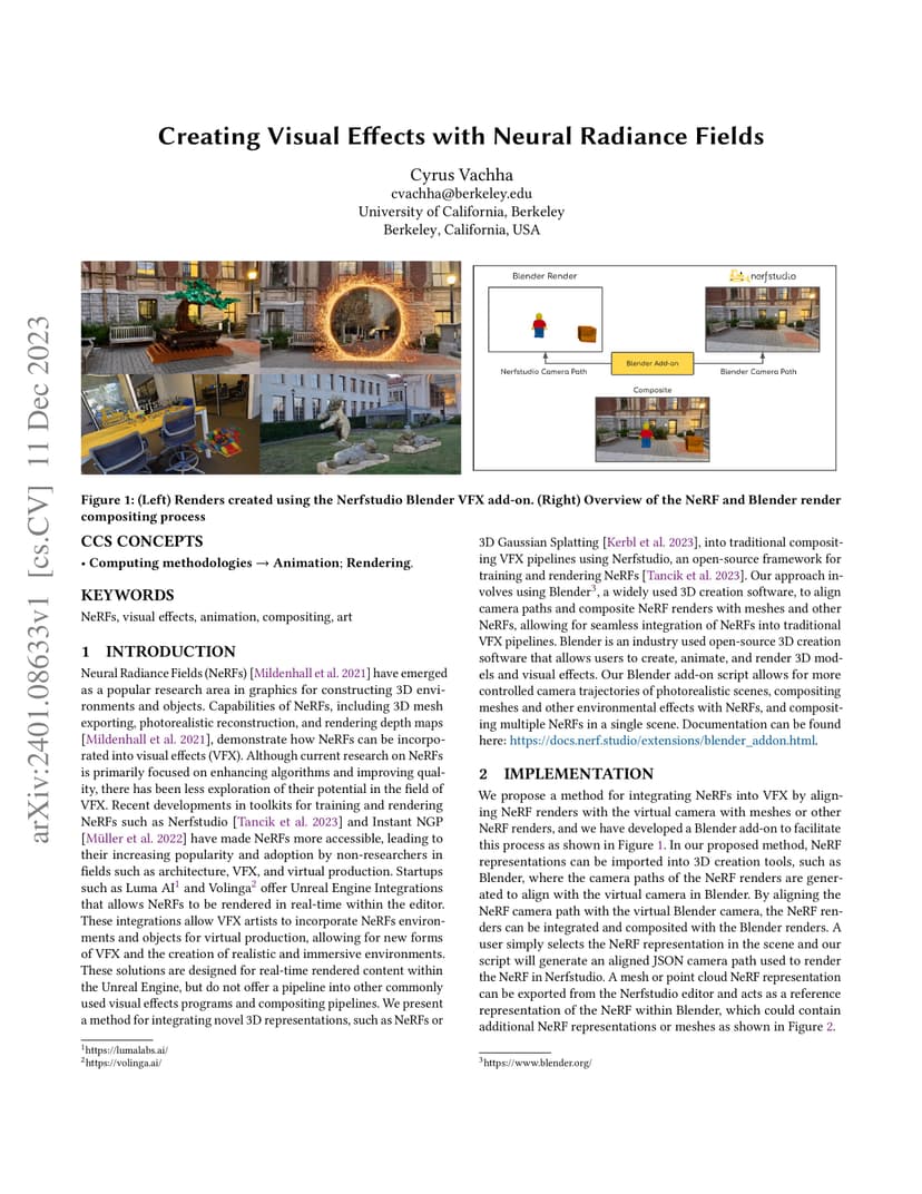 Creating Visual Effects with Neural Radiance Fields