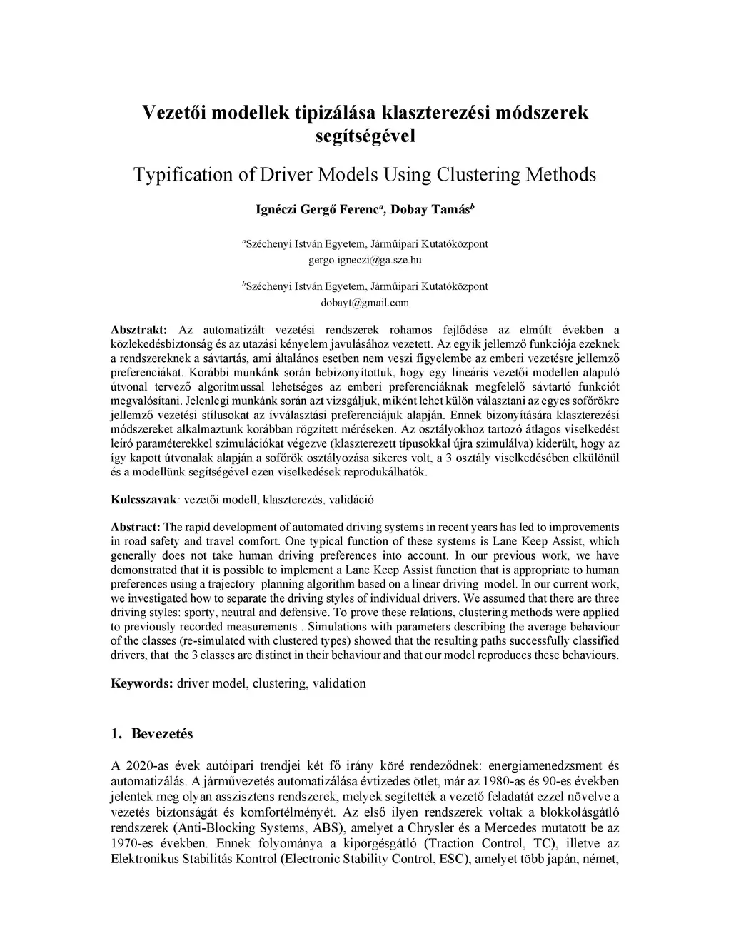 Typification of Driver Models Using Clustering Methods