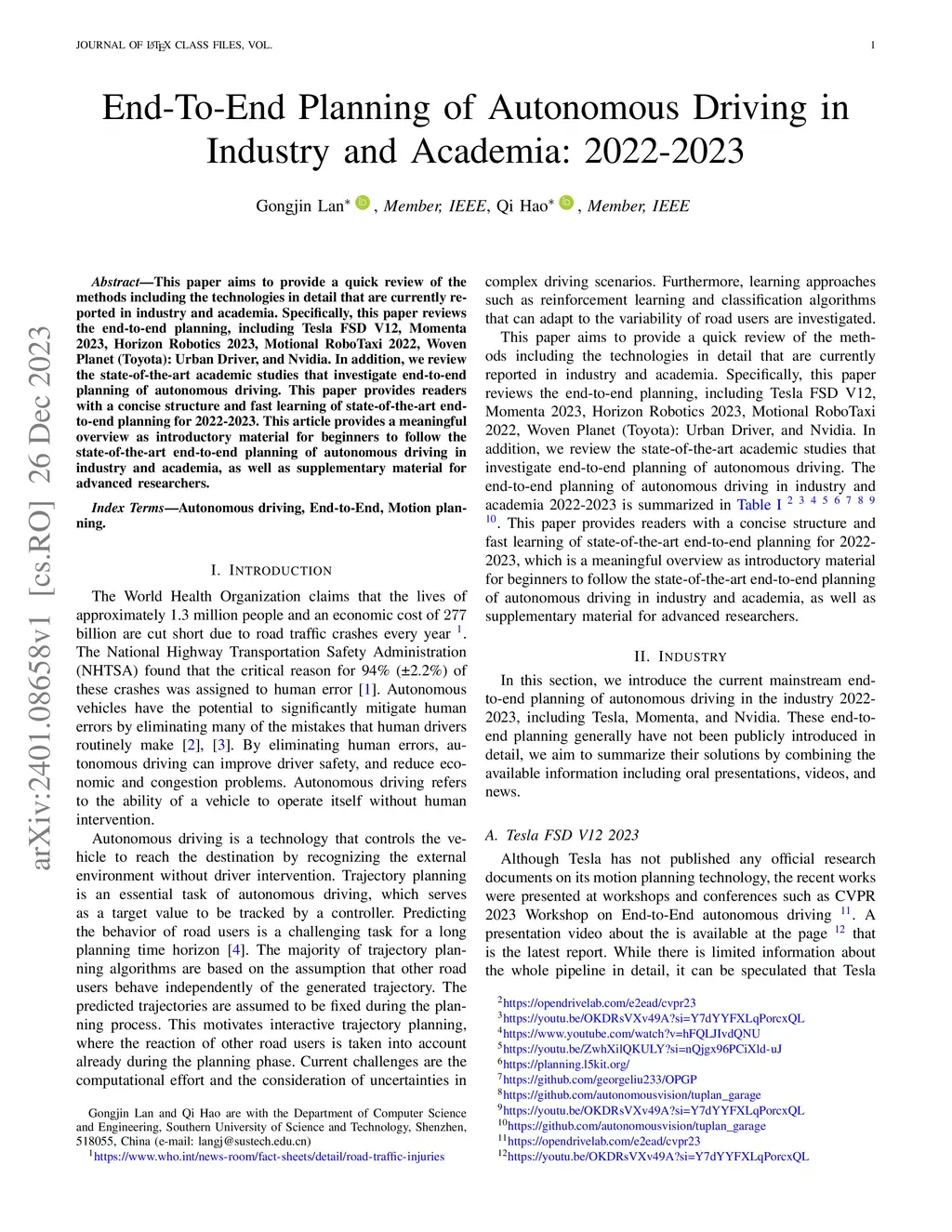 End-To-End Planning of Autonomous Driving in Industry and Academia: 2022-2023