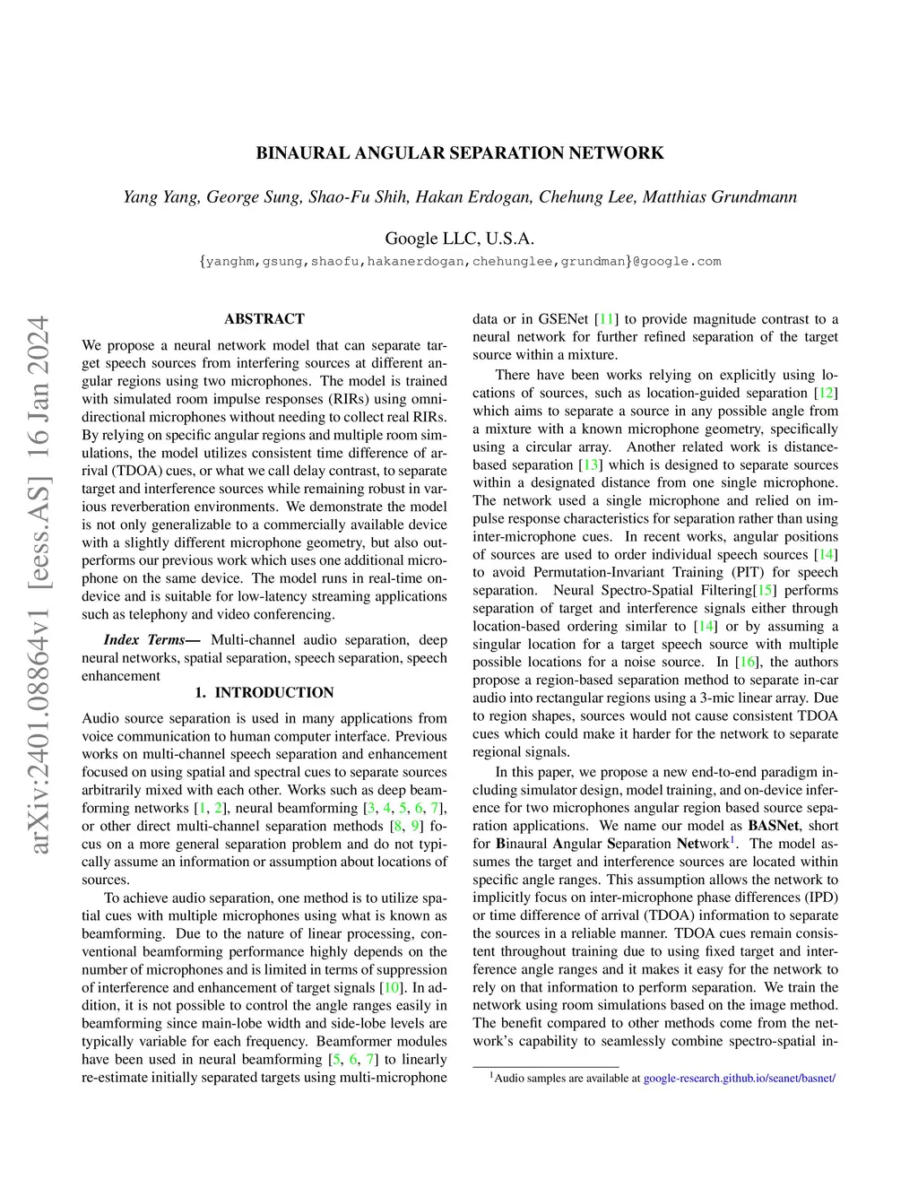 Binaural Angular Separation Network