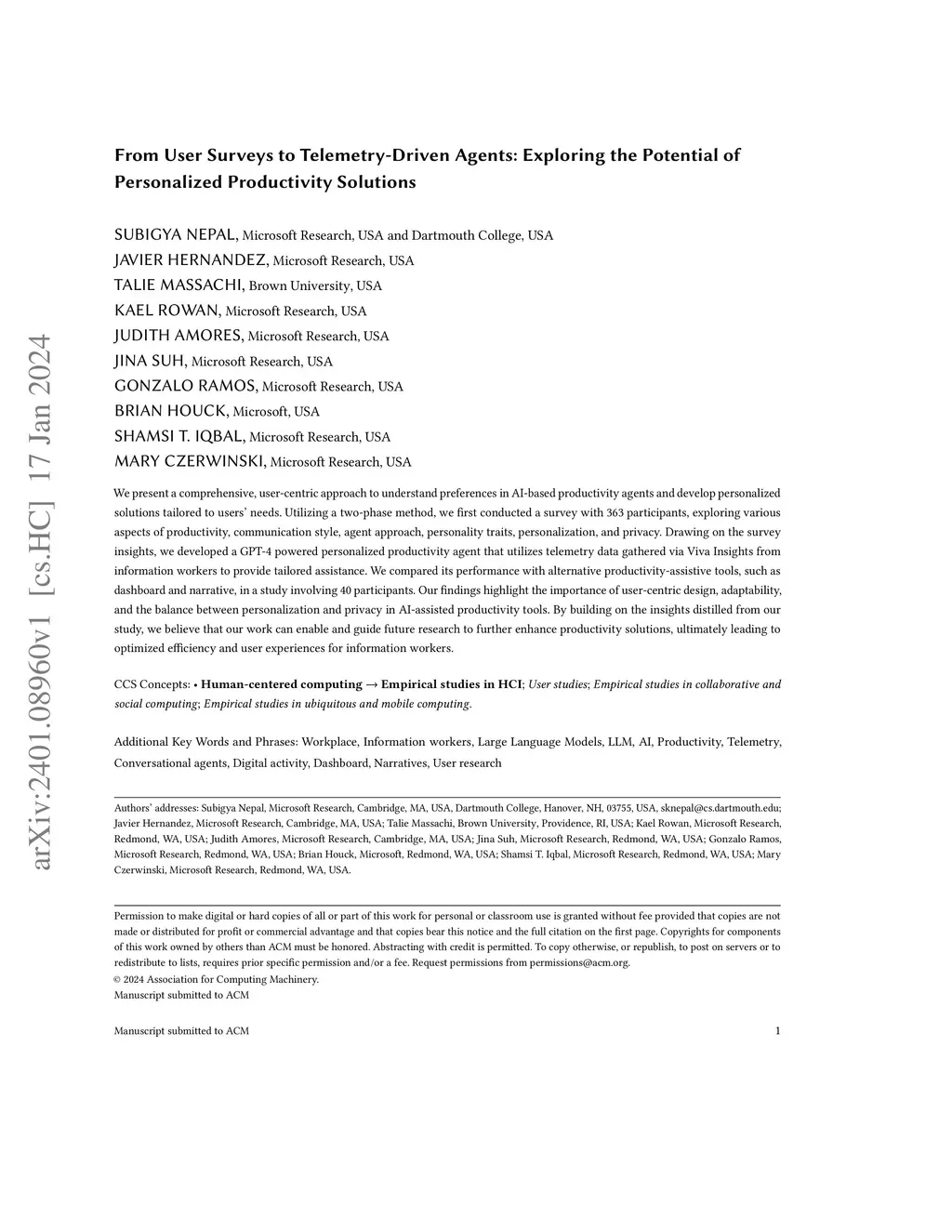 From User Surveys to Telemetry-Driven AI Agents: Exploring the Potential of Personalized Productivity Solutions